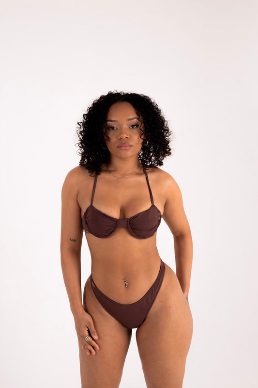 High leg bottoms (thong or brazilian back option) - chocolate brown