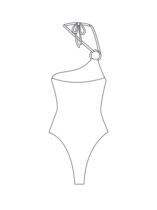 Custom asymmetric o-ring bodysuit/swimsuit